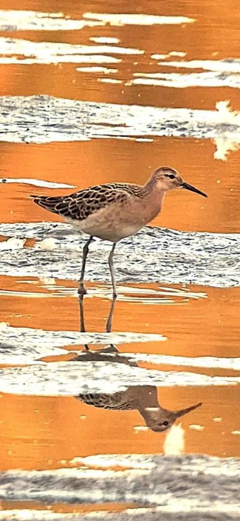 Während sich Weißstorch und Co. langsam fertig zum Abflug machen, treffen zahlreiche Arten des (europäischen) Nordens bereits bei uns ein. Während es in Nordskandinavien bereits zu Schneefällen kommt, machen sich viele Watvögel bereits auf den Weg, bevor Wasser- und Schlammflächen zufrieren. Denn diese benötigen sie zur Nahrungssuche. Die meisten Arten rasten an der Nordsee, einige überwintern sogar dort. Andere kommen -je nach Zugroute- aber auch durch Ostdeutschland und rasten in großen Teichgebieten. Von Sommerende bis Herbstanfang können zahlreiche Limikolen angetroffen werden, die es hier sonst nicht gibt. Auf dem nebenstehenden Bild ist ein Sichelstrandläufer zu sehen, über den ich mich besonders gefreut habe. Einzelne Arten überwintern auch bei uns. Viele sind unscheinbar, machen beim Beobachten aber besonders viel Freude. Dazu gehören beispielsweise Sandregenpfeifer, Grünschenkel und Bruchwasserläufer.